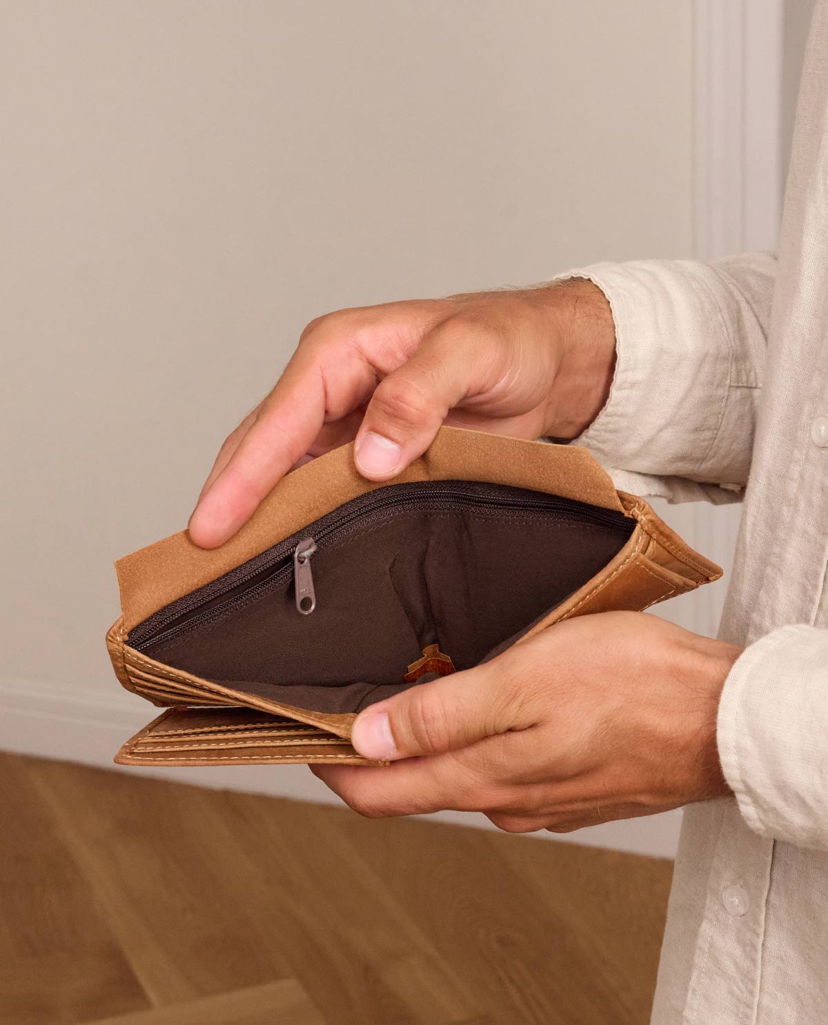 The soft interior of “Oswin” ensures that your cards and banknotes are stored safely and well-organized. Thanks to the well-thought-out compartment layout, you always keep an overview. The combination of robust leather and practical details makes “Oswin” a loyal companion that always makes a good impression, both in everyday life and on special occasions. A wallet that is not only functional but also impresses with its timeless elegance.