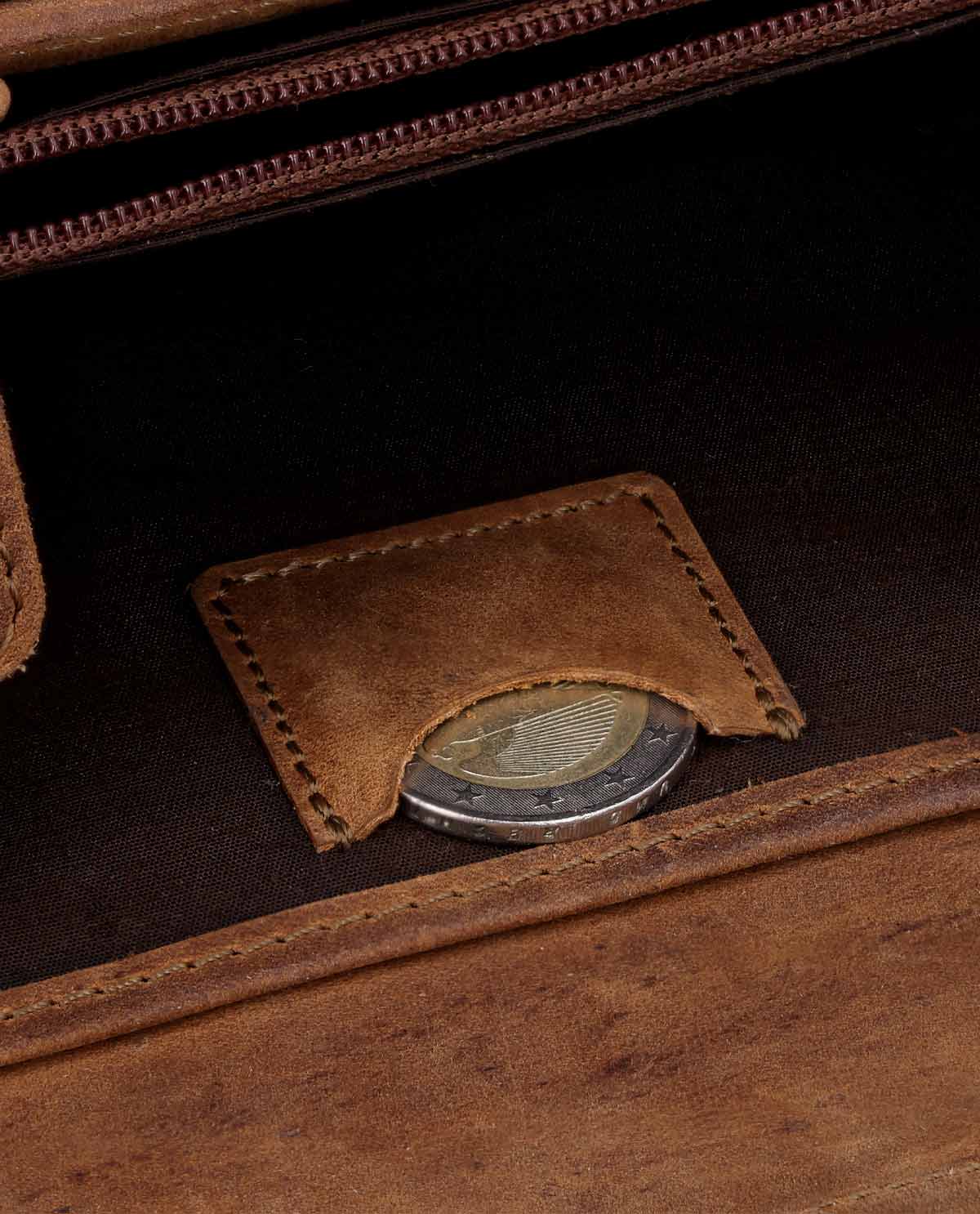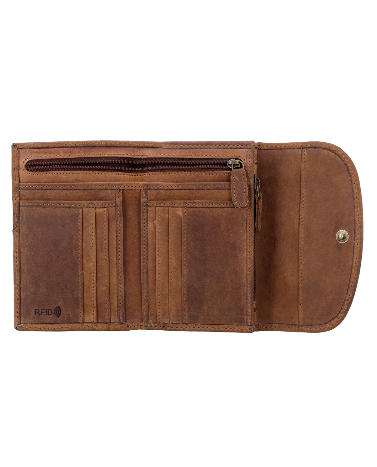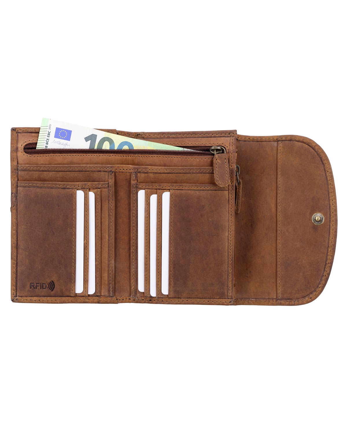 Thanks to the integrated RFID protection technology, the "Bryanna" wallet reliably protects your cards from unauthorized scanning. A special highlight is the small coin compartment, designed specifically for a €1 coin – ideal for always having your shopping cart token ready. The elegant brown leather not only gives the wallet a noble appearance but also makes it a durable and functional companion for all who appreciate both style and security.