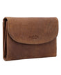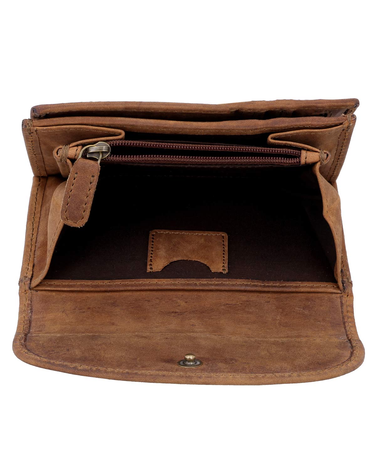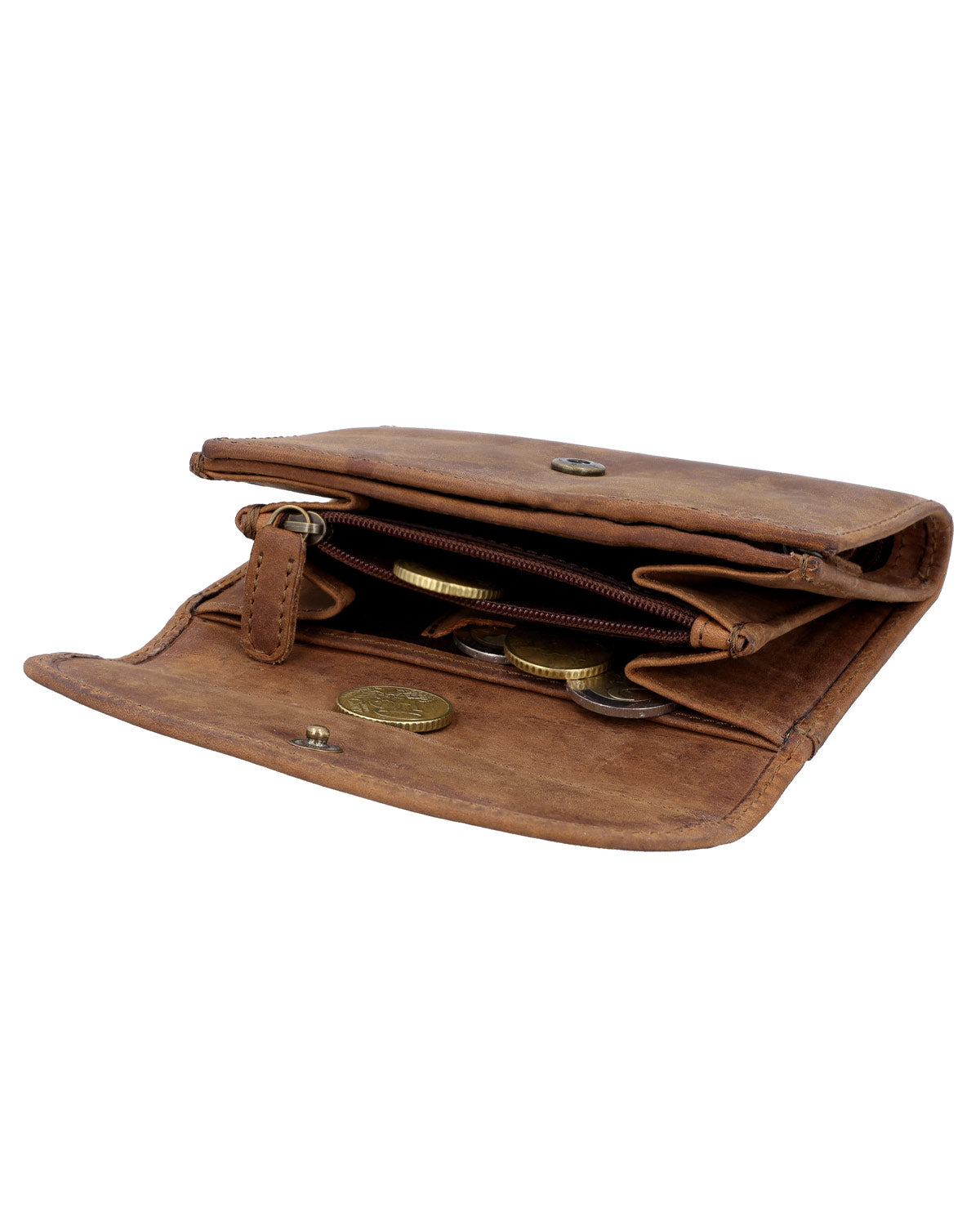 The "Bryanna" wallet, made from high-quality brown leather, combines timeless design with excellent functionality. With its secure snap closure, it ensures that all your valuables are stored safely and securely. The wallet offers numerous card slots, cleverly divided so that you have your cards clearly organized and quickly accessible. Particularly practical are the internal zippered compartments that provide space for coins or other small valuables.