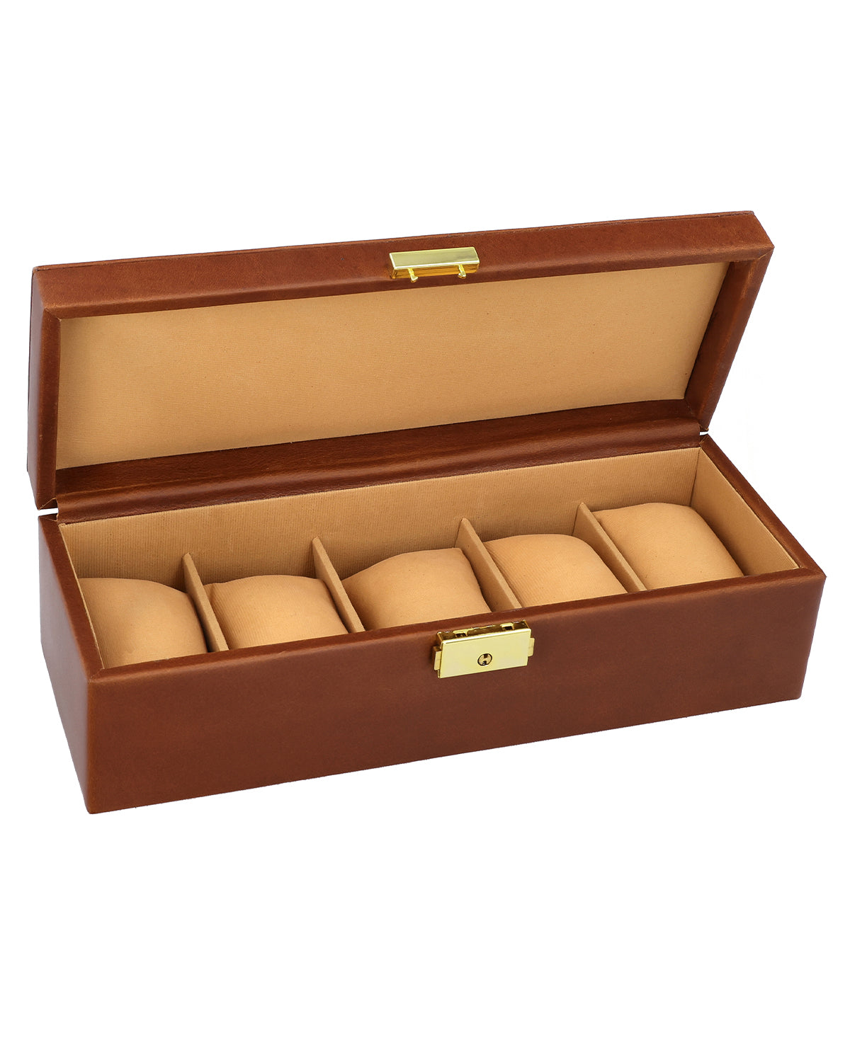 Inside, "Marcel" offers five padded compartments with removable cushions, where your watches lie safely and clearly. Whether sporty models or noble classics – every watch finds its place. The sturdy gold-look closure ensures that everything stays protected, even on trips. "Marcel" is thus ideal for collectors, lovers of fine accessories, or as a stylish gift for special occasions. A box that perfectly combines elegance, safety, and quality – for watches that deserve more than just a drawer.