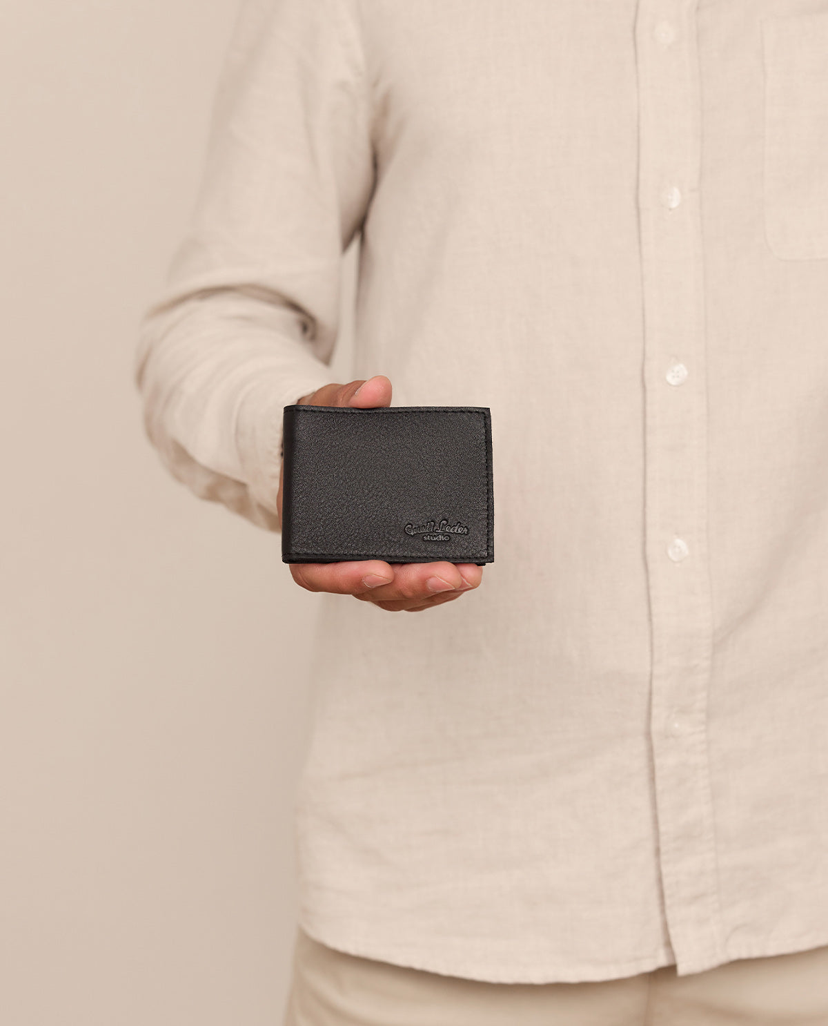 "Danny" er laget av holdbart geiteskinn og har en stor hovedlomme, flere kortspor og en myntlomme som er sikret med en trykknapp. Det perfekte stedet å holde kontanter, kort og nøkler trygge. Det er raskt og enkelt å ta med seg "Danny" når du forlater huset.