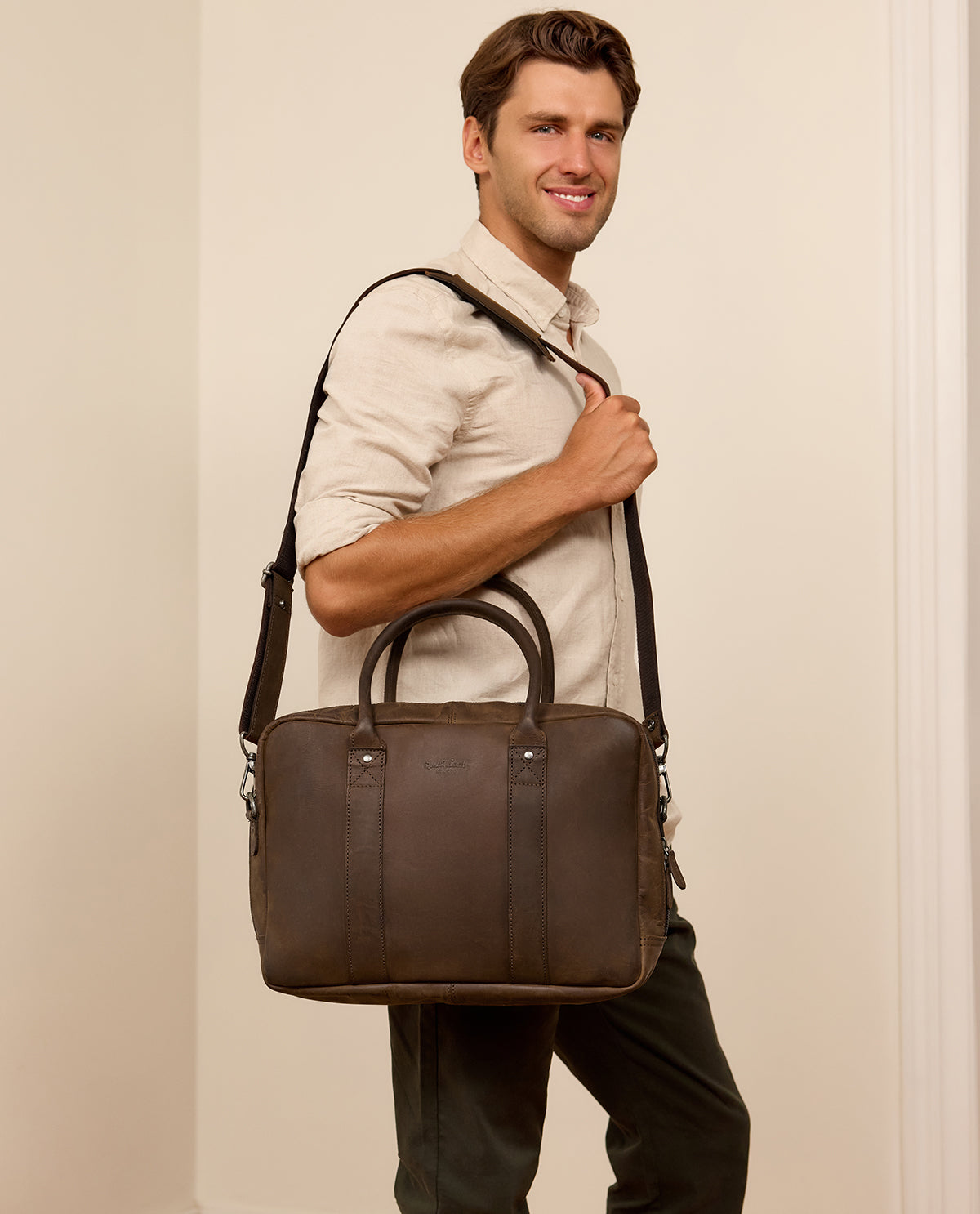 Det romslige innerrommet tilbyr plass til laptop, dokumenter og andre nødvendigheter, mens flere mindre rom sørger for orden. Den justerbare skulderstroppen og de solide håndtakene gir deg en behagelig bæreopplevelse, helt etter dine behov. Den høykvalitets utførelsen garanterer lang levetid og slitestyrke, som vil følge deg lenge.