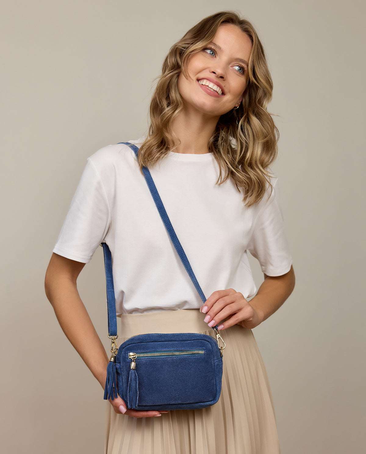 Belteveske Mageveske Veske Damer Blå Lær - Made in Italy