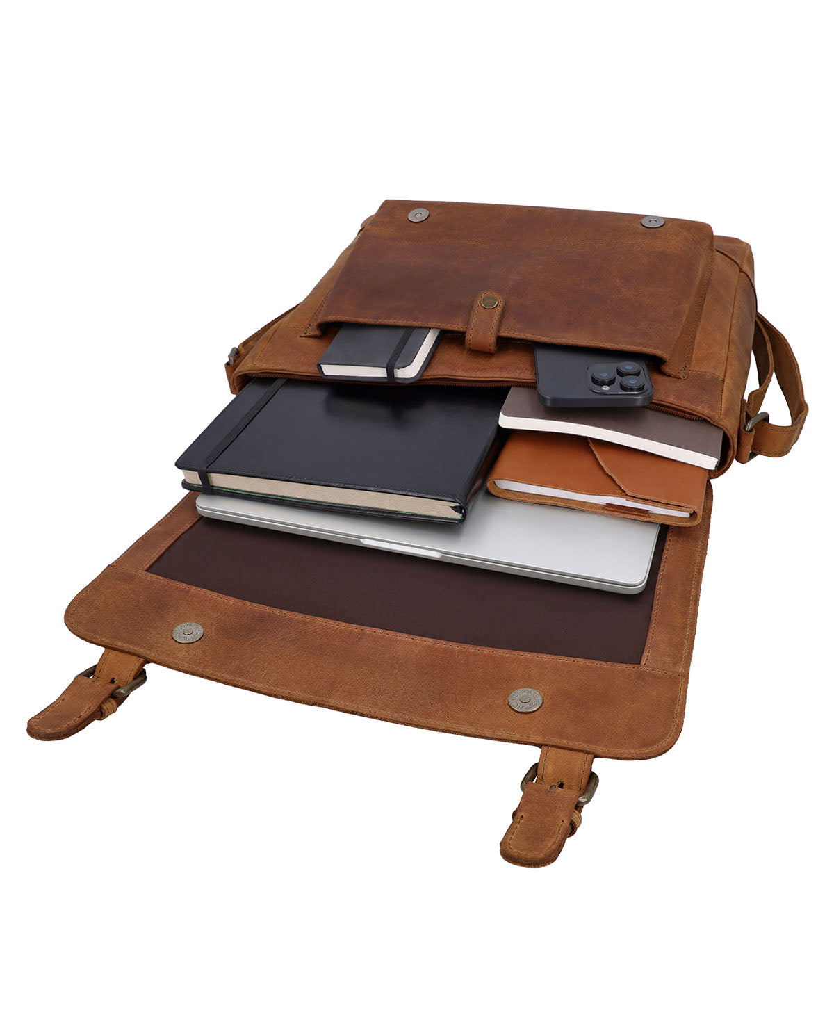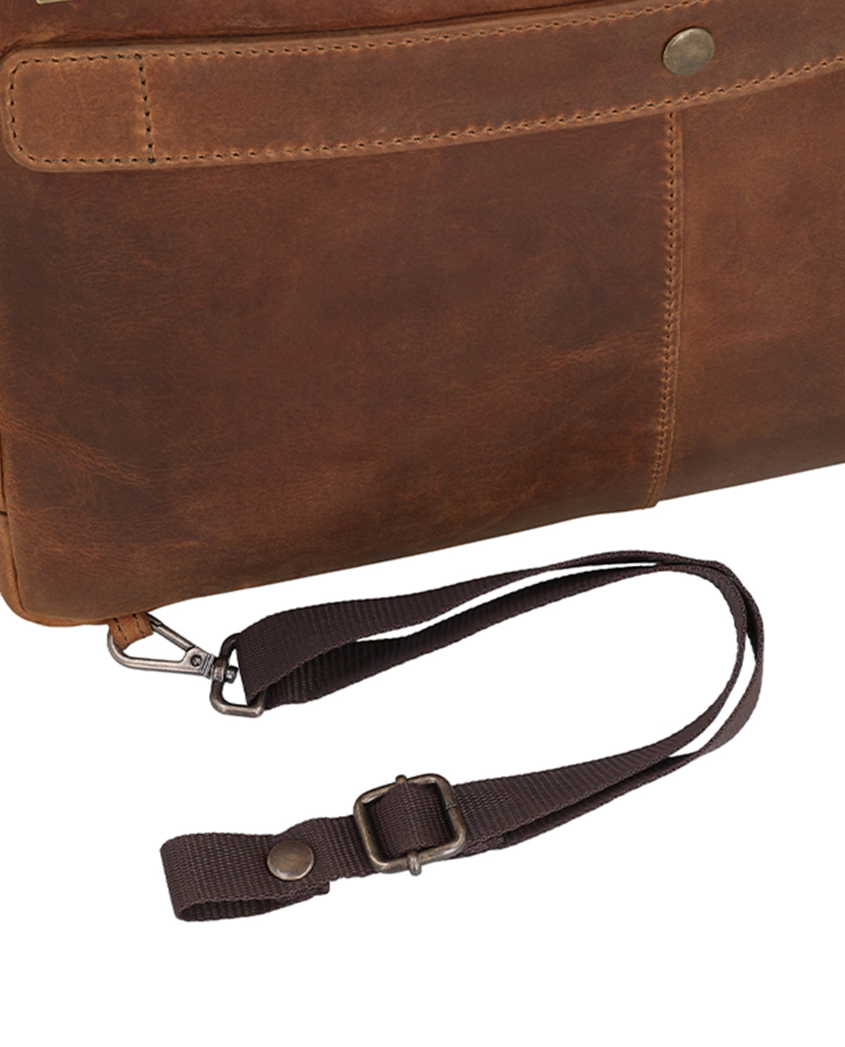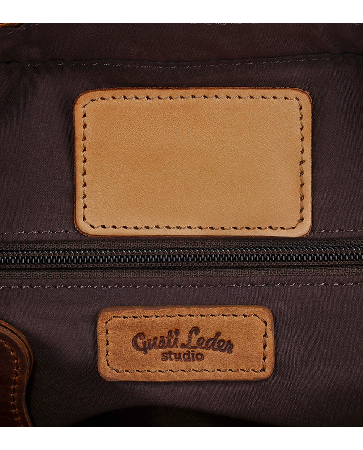 Også på farten viser «Brin» seg å være behagelig tilpasningsdyktig. Den justerbare skulderstroppen sørger for komfortabel bæring i hverdagen, mens den ekstra stroppen for sykkelturer holder vesken stabilt mot kroppen når du er i bevegelse. For reiser er det integrert en koffertstropp med trykknapp, slik at «Brin» enkelt kan festes til en trolley. Et lomme med glidelås på utsiden gir deg rask tilgang til ting som skal være lett tilgjengelige, uten at du må lete i hovedrommet hver gang. På innsiden gir en graveringslapp vesken et personlig preg. Slik blir «Brin» en forretningsveske i skinn som forener hverdag, mobilitet og organisering på en rolig, gjennomtenkt måte.
