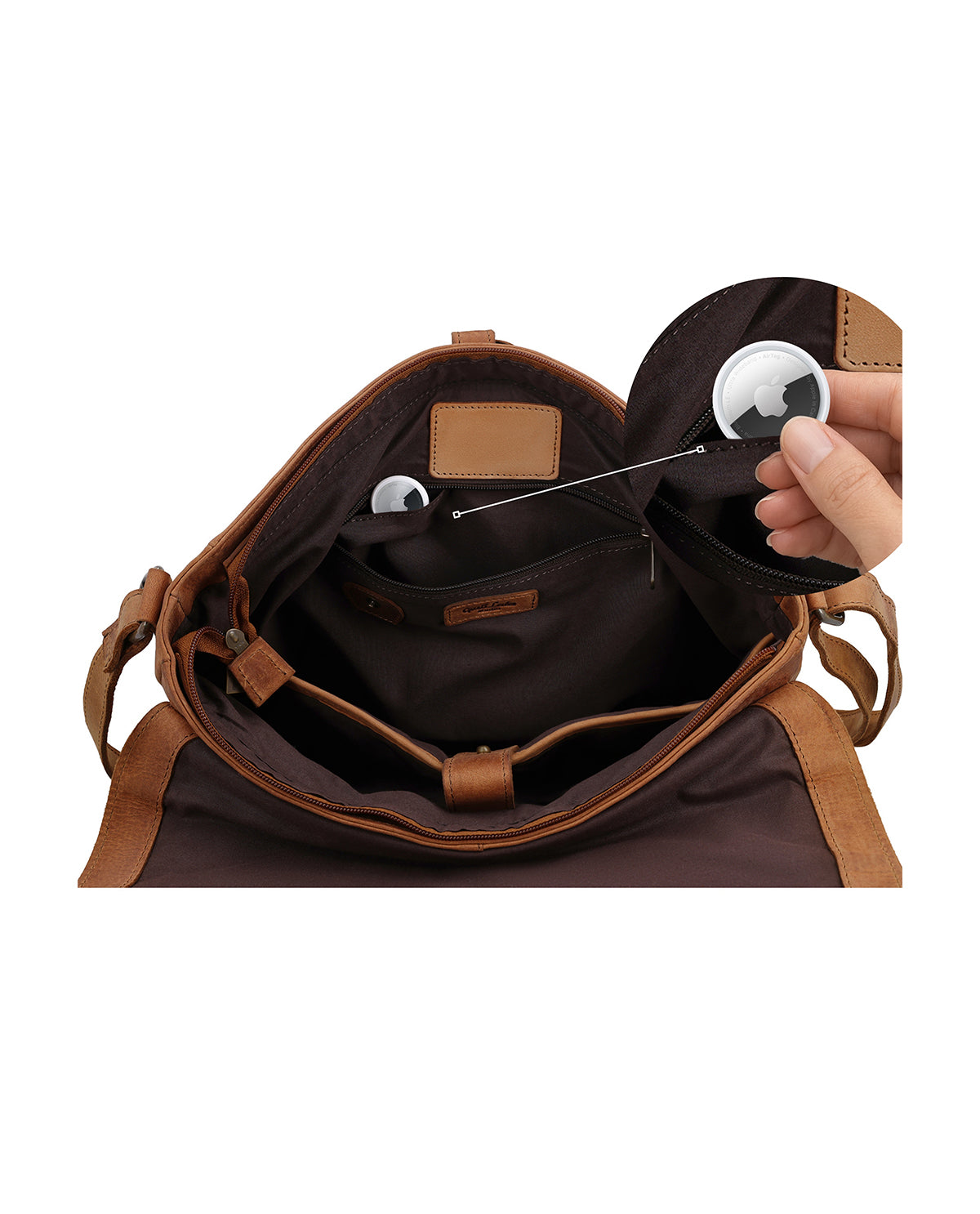 Forretningsvesken «Brin» er en brun skinnveske for damer og herrer som gir struktur i hverdagen din uten å virke stiv. Den følger deg til kontoret, til møter eller på reise, og kombinerer et klart, profesjonelt uttrykk med gjennomtenkte funksjoner. For en god følelse på farten er det integrert et skjult AirTag-rom, mens en avtakbar nøkkelring sørger for at du ikke trenger å lete lenge etter viktige ting. Innvendig beskytter et laptop-rom enheten din pålitelig, supplert med et lommerom med trykknapp og et rom med glidelås, slik at dokumenter, kabler eller mindre nødvendigheter forblir ryddig oppbevart. Hovedlukkingen med glidelås, supplert med magneter, kombinerer sikkerhet med enkel håndtering i hverdagen.