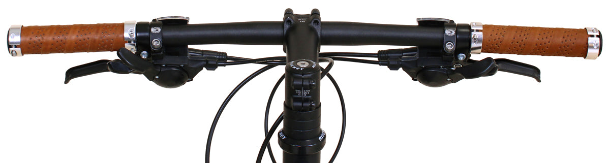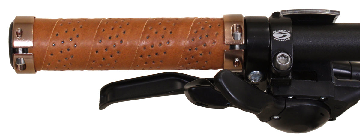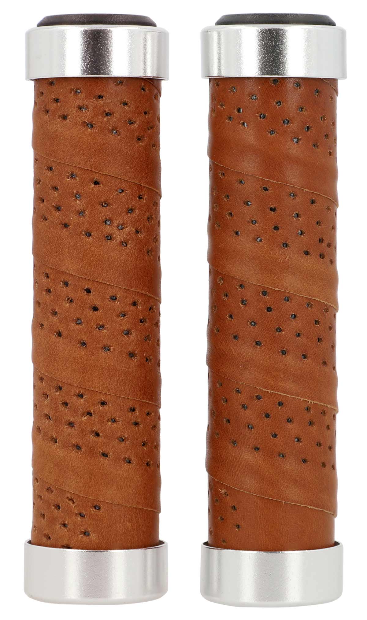 Ekte lær styregrep sykkelgrep lærgrep brun lær metallring sølv glatt