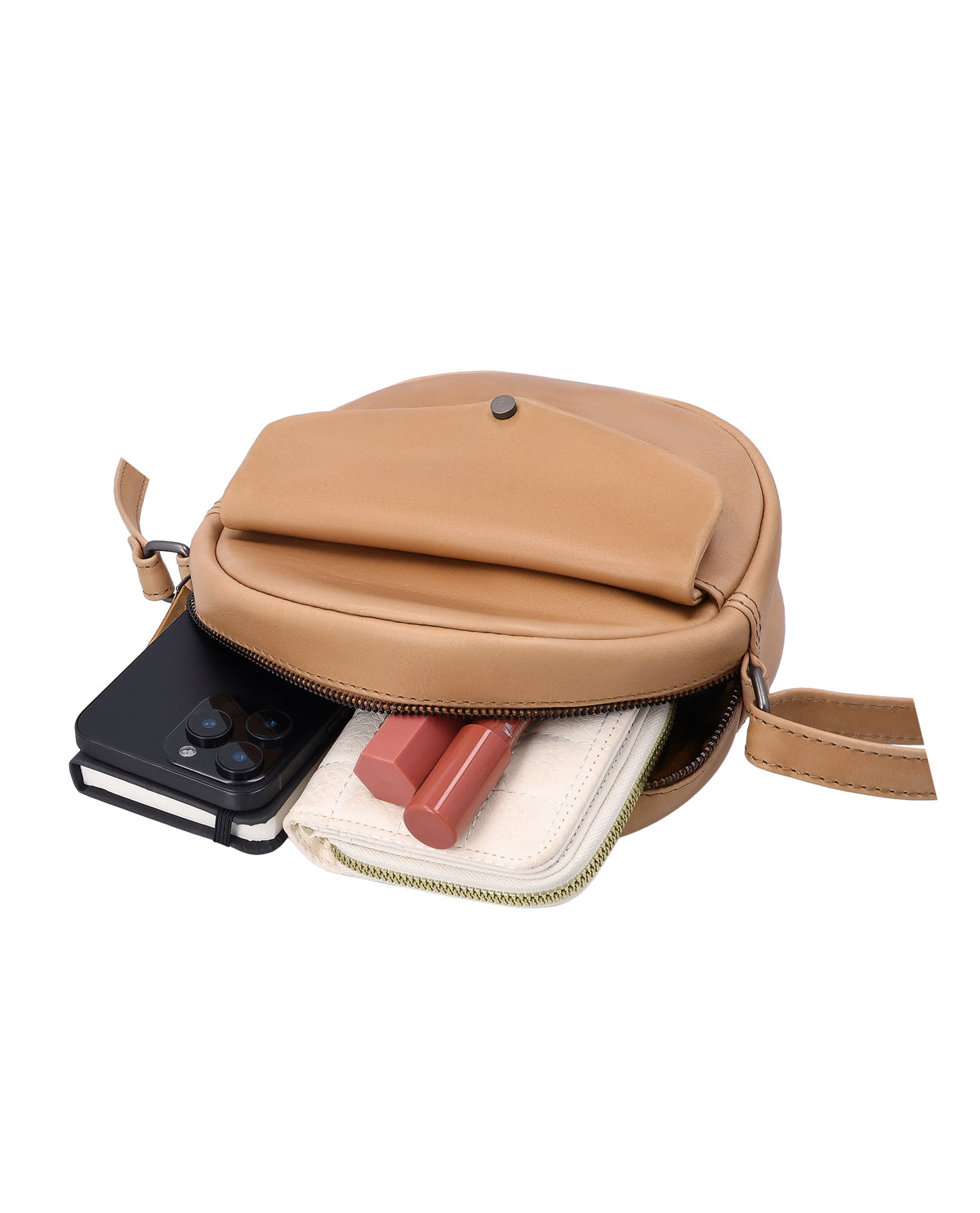 Den lille skuldervesken «Tora» er en allsidig håndveske i skinn for damer som ønsker å kombinere funksjonalitet og stilig diskresjon. Den er laget av høykvalitets okseskinn i en myk beige farge og har et moderne og tidløst utseende. Et skjult AirTag-rom gir ekstra sikkerhet, mens en avtakbar nøkkelring holder dine viktigste ting lett tilgjengelig. Til tross for sin kompakte form, tilbyr «Tora» akkurat den plassen du trenger i hverdagen – oversiktlig, lett og alltid passende.