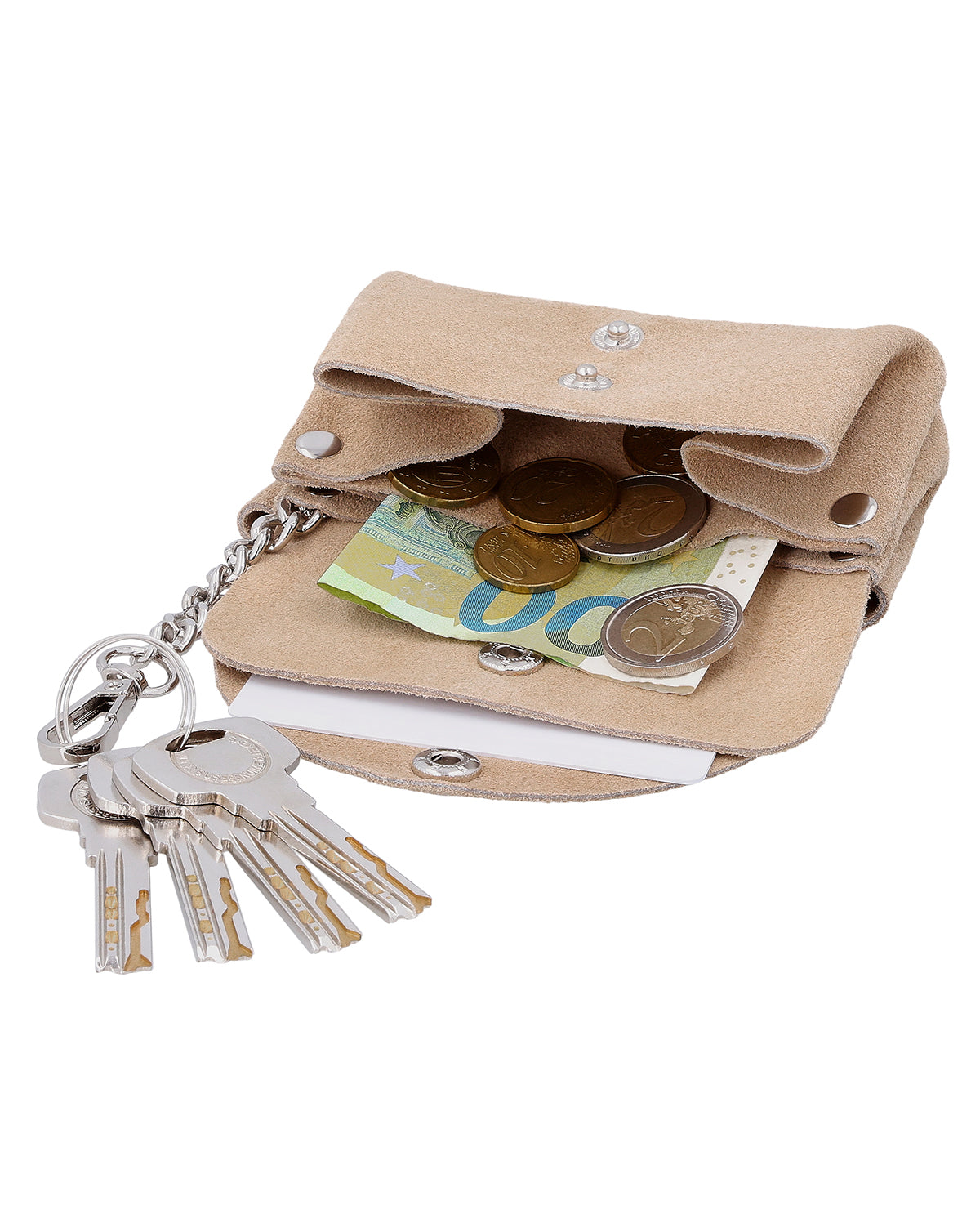 Nøkkeletuiet «Mathilda» kombinerer italiensk håndverk med et stilig og praktisk design. Det er produsert i Italia av høykvalitets lær, ligger godt i hånden og er et diskret, men elegant tilbehør i hverdagen. Den sikre trykknapp-lukkingen sørger for at nøklene dine alltid er beskyttet, mens den robuste metallnøkkelkroken holder de viktigste nøklene dine på plass. Takket være den kompakte formen passer «Mathilda» lett i enhver veske – ideelt hvis du setter pris på både orden og eleganse.