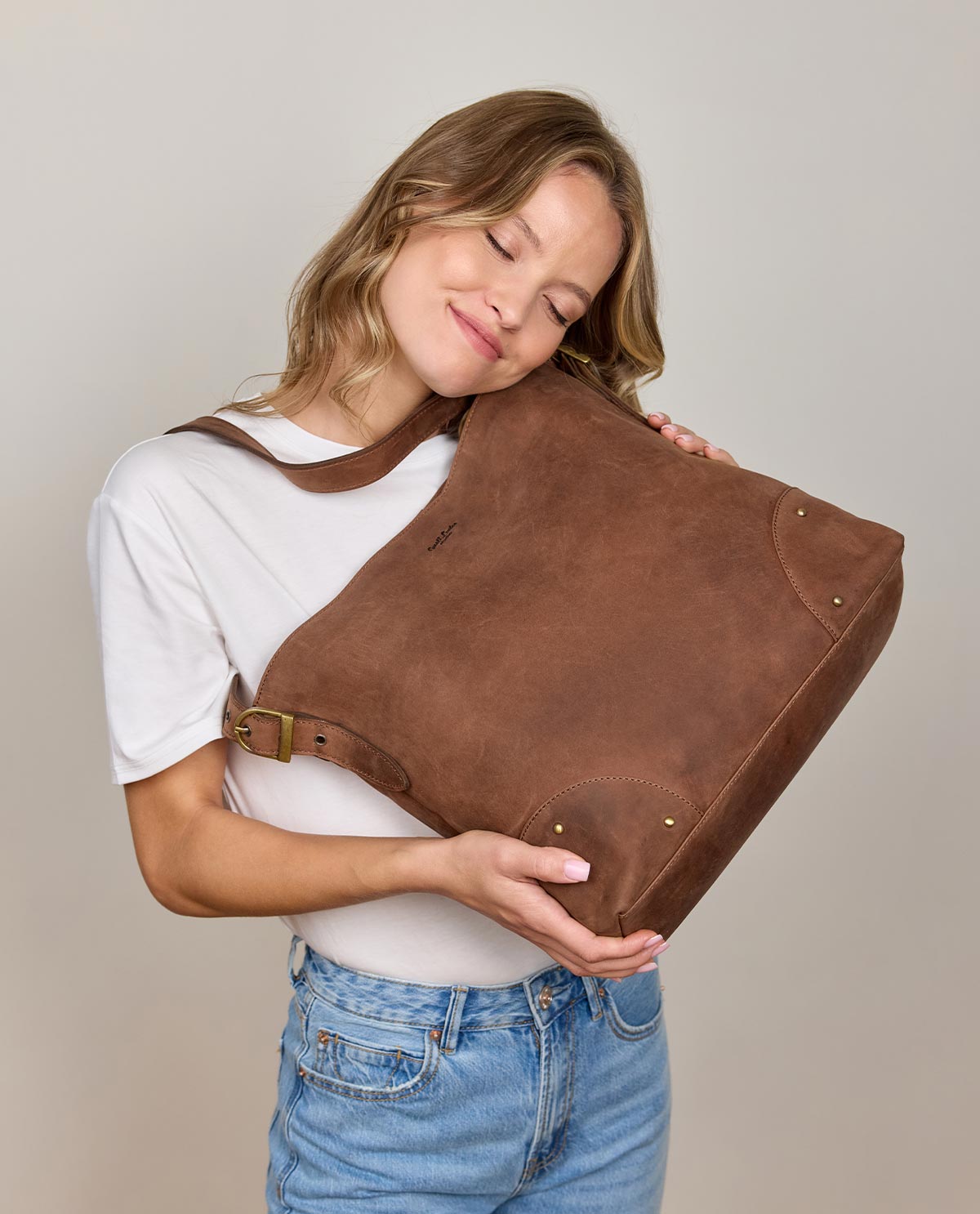 "Moje" imponerer ikke bare med sin funksjonalitet, men også med sine høykvalitetsdetaljer. Det innvendige rommet tilbyr i tillegg en glidelåslomme for enda mer sikkerhet og lagringsplass. Skinnlappen for gravering gir vesken en personlig touch, mens de dekorative messingnaglene på de fremre hjørnene gir det lille ekstra. Vesken er et ideelt valg for kvinner som verdsetter både stil og praktisk nytte – perfekt for hver dag, på kontoret eller på reise.
