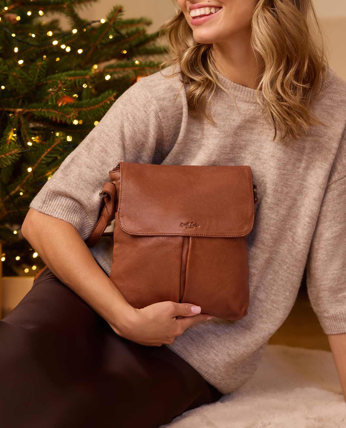 Med sine tre glidelåslommer sørger "Veha" for perfekt organisering og oversikt – ideelt for å oppbevare smarttelefon, nøkler, lommebok eller kosmetikk sikkert og atskilt. De to ekstra forlommene gir deg rask tilgang til ting du vil ha lett tilgjengelig. Det klare, rektangulære designet gir en moderne silhuett, mens den varme brunfargen på vesken gir ethvert antrekk et elegant preg. Med "Veha" er du stilfullt og organisert på farten, enten det er til hverdags, på reise eller byvandring.