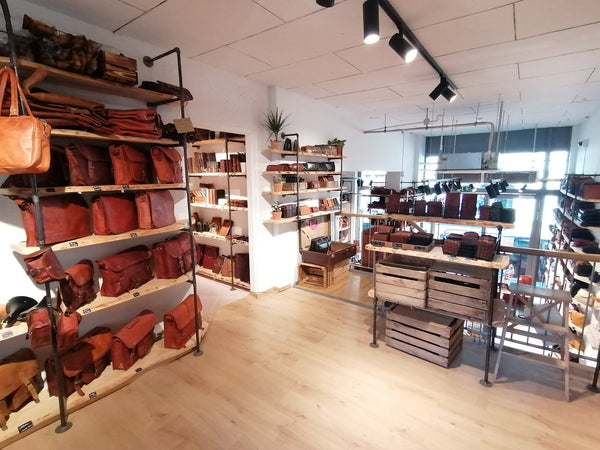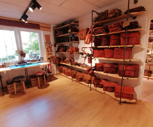 I vår koselige butikk i Rosenthalerstrasse i det trendy Mitte, venter et stort utvalg av unike skinnprodukter på deg. Fra lommebøker til magevesker og byryggsekker har vi alt du kan ønske deg. Kom innom, kjenn duften av skinnvarer og bli overbevist av våre produkter. Vi ser frem til ditt besøk! Ditt Gusti Team Berlin