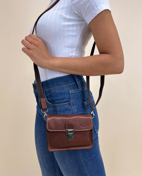 Den brune lærportemonéen utmerker seg med sitt elegante og kompakte design. Hovedlåsen er plassert i midten og gir deg rask tilgang til kortene og kontantene dine. På baksiden er det en ekstra lås som gir ekstra sikkerhet. Denne lommeboken er perfekt for daglig bruk, da den ikke bare er praktisk, men også stilig.