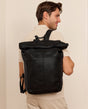 Rolltop kurerryggsekk ryggsekk lærsekk vintage bysekk utendørssekk laptopveske universitetsekk vandresekk svart lær