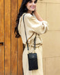"Silvia" er virkelig noe spesielt: denne utrolig stilige 2-i-1 løsningen for mobilen og finansene dine er perfekt for daglig bruk, men spesielt bra for festivaler og klubber siden du kan ha den nær kroppen din. I tråd med mottoet til våre populære vesker, har vi her en litt annerledes lær favoritt som vil støtte deg like lojalt og allsidig. Samtidig er vår "Silvia" også utrolig trendy og en ekte blikkfanger!